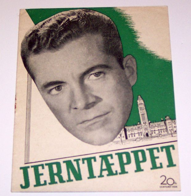 "The Iron Curtain" Movie Program (in Dutch) - 1948. | Small movie program written in Dutch with Dana Andrews on cover and silhouette of Parliament Hill in Ottawa. |